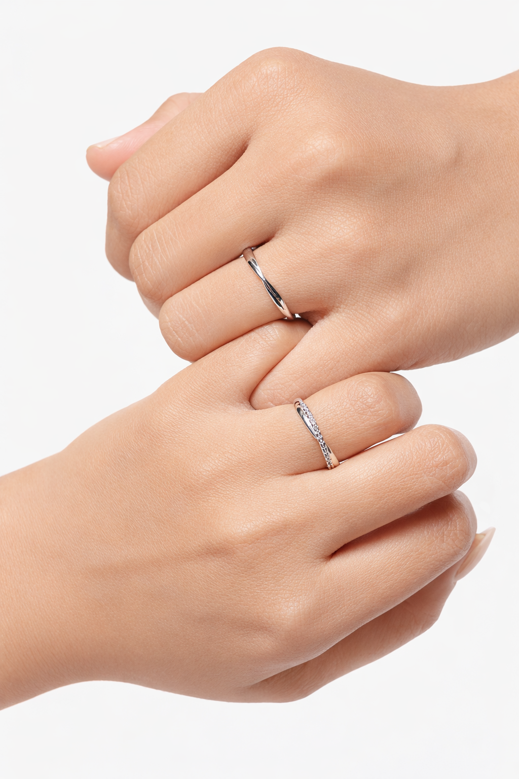 Timeless and understated, the Classic Harmony Couple Rings are designed to celebrate togetherness through clean lines and subtle detailing. Crafted with a Silver 92.5 base and finished with a premium anti-tarnish coating, this couple ring set offers lasting shine and everyday comfort. One ring features a sleek, polished surface for a minimal look, while the matching ring is accented with a delicate row of finely set stones, adding a soft touch of sparkle. Balanced and refined, these rings reflect two distinct styles united in perfect harmony — ideal for couples who value simplicity with meaning.