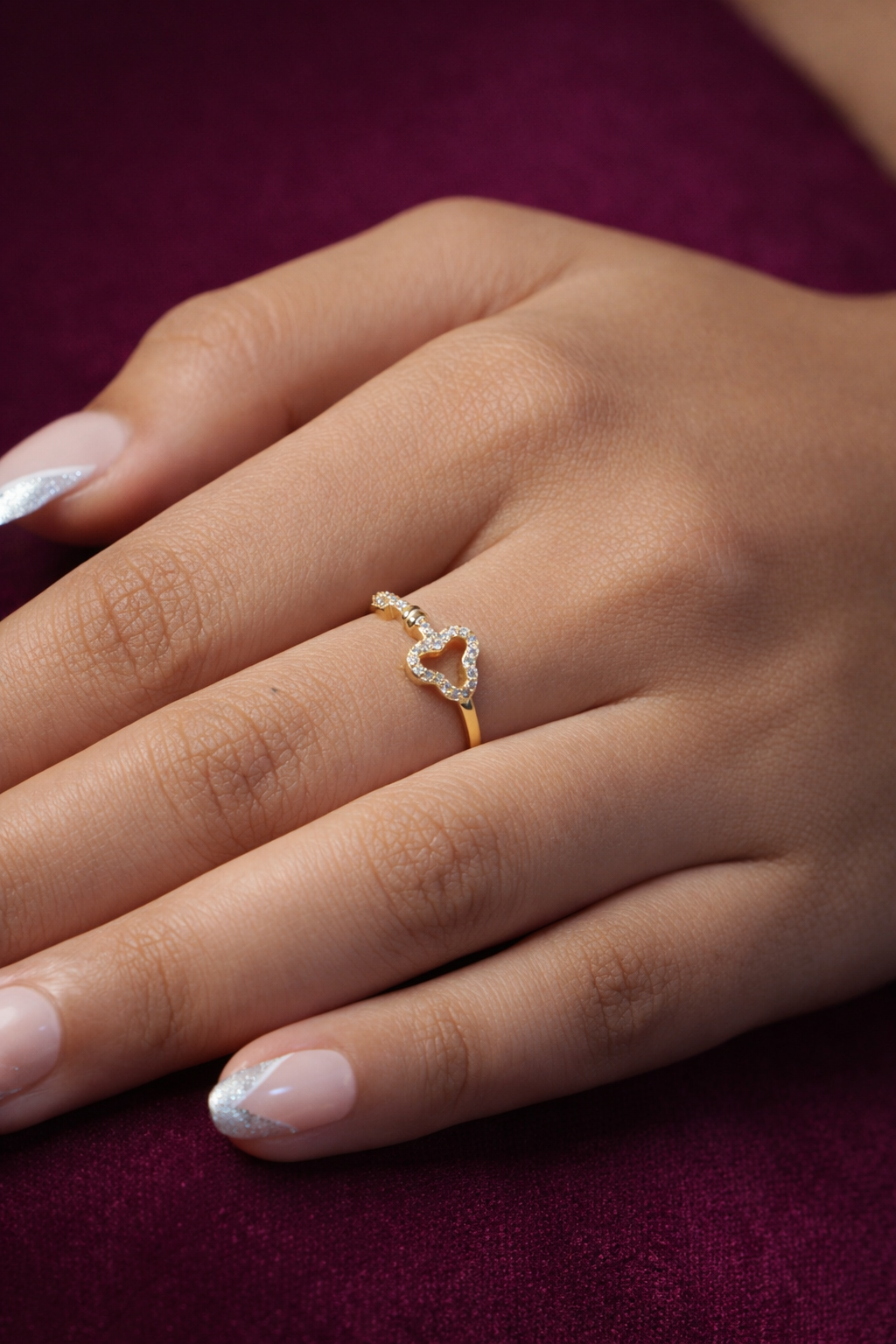 Symbolic and softly radiant, the Golden Heart Key Ring is designed to represent love, trust, and meaningful connections. Crafted with a Silver 92.5 base and finished with a premium anti-tarnish coating, this ring offers lasting brilliance and everyday durability. The design features a delicately sculpted key motif with a heart-shaped bow, outlined with fine stone detailing that adds a gentle sparkle. A slender, minimal band keeps the look refined, allowing the symbolic centerpiece to stand out with elegant charm — perfect for gifting or wearing as a personal keepsake.